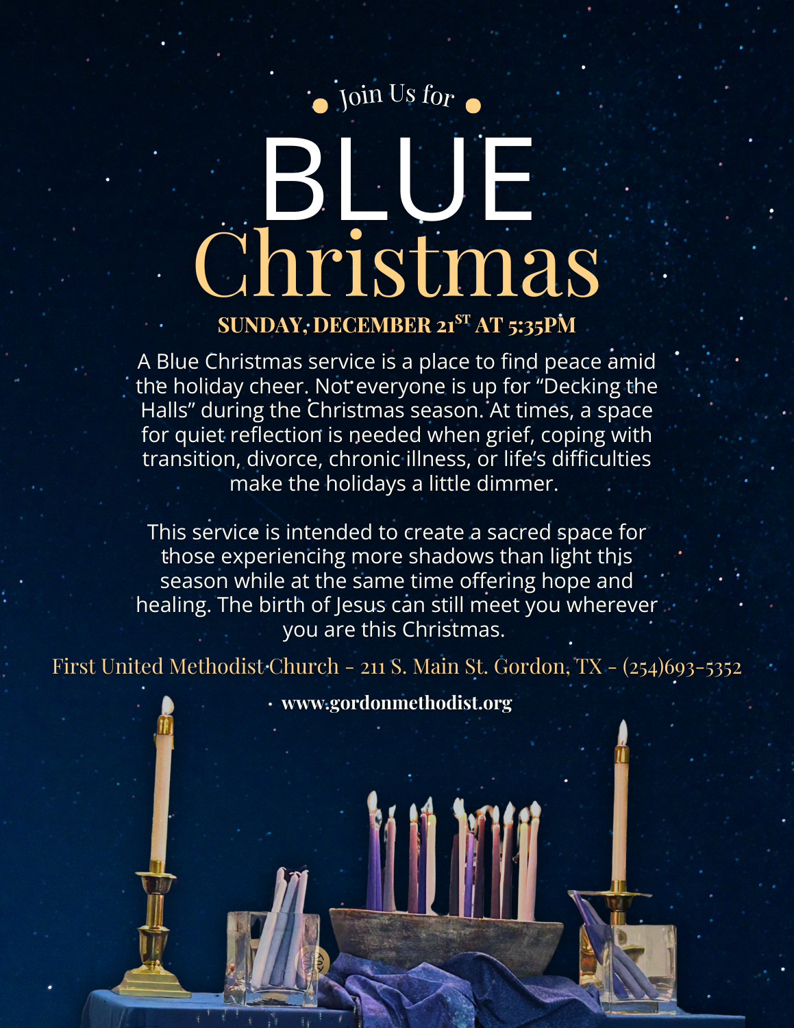 Who? This service is meant for anyone who might need to find peace amid the holiday cheer rather than the typical joy encountered at most Christmas services. If you are struggling with a transition, the loss of a loved one, divorce, or another challenge, this service is designed to create space for Christ to meet you where you are this season.